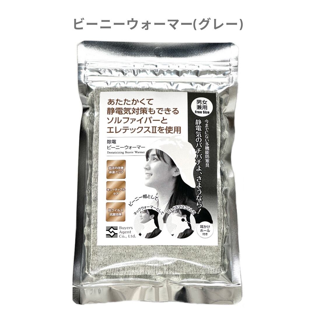 静電気防止機能付 ビーニーウォーマー【グレー】